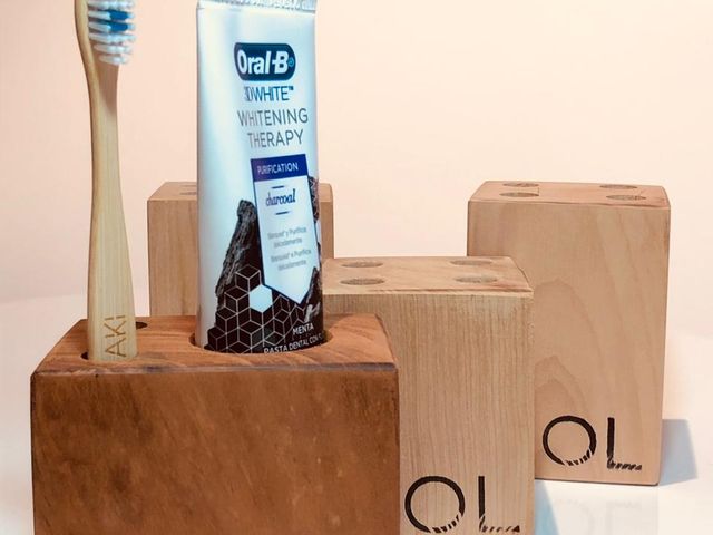 AGOTADO - Porta cepillos de dientes de madera (para 2)