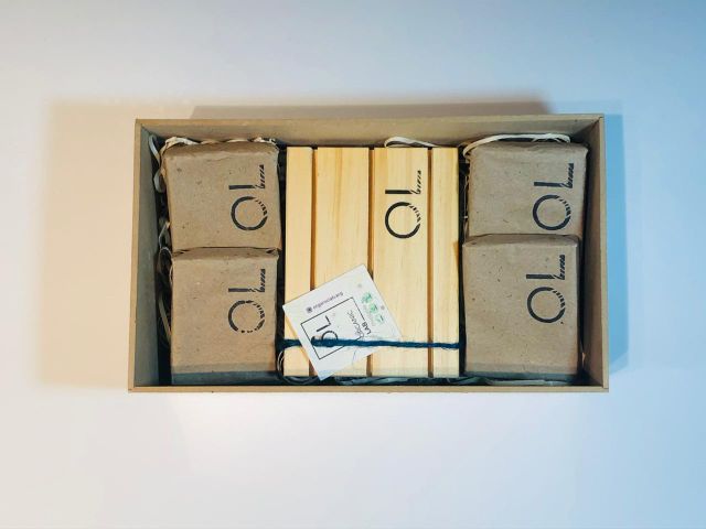 Contiene 1 jabon de calendula y manzanilla, 1 jabon exfoliante, 1 jabon de carbon activado (enriquecido con aloe y rosa mosqueta), 1 jabon de aloe, rosa mosqueta y vitamina E + una jabonera. Dicha caja es de fibrofacil para que puedas darle el uso que prefieras, ya sea para guardar los productos o para otro fin. Nuestra filosofía es CERO desperdicio. Así...